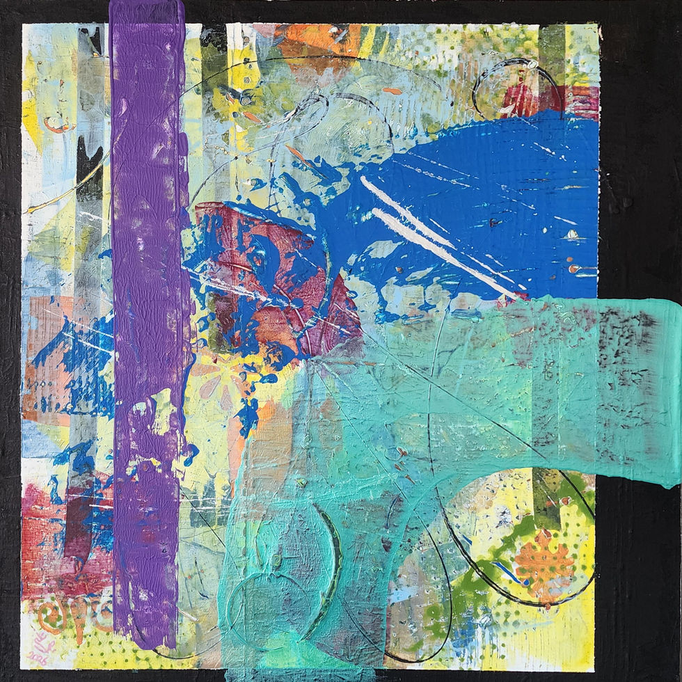 A vibrant intersection of texture and tone, celebrating the multifaceted layers of a life lived fully. The contrast between bold pigments and the organic wood surface captures the beautiful tension between structure and spontaneity; an energetic focal point for any creative environment.
